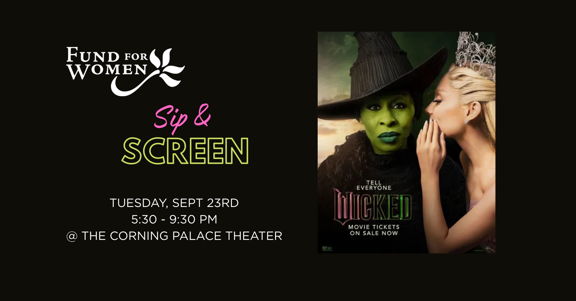Come and join us for a Wicked fun evening of food, drinks & networking starting at 5:30 at The Palace Theater, with the movie starting at 6:30.